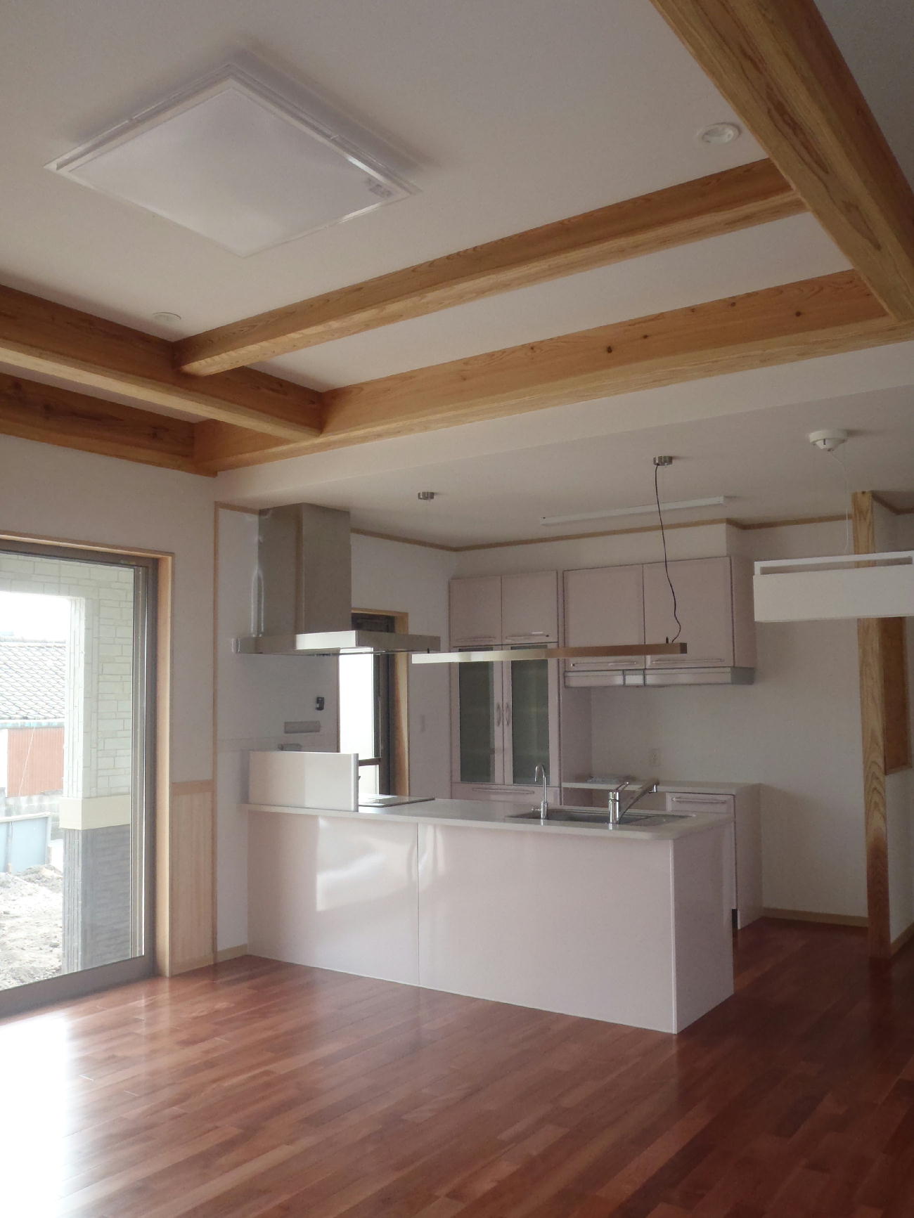 集成材を使わず極太一本木で梁を通す様はまさに圧巻の一言です。
